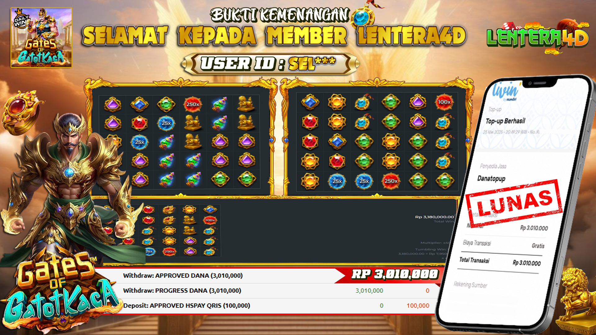 TOTAL KEMENANGAN : Rp 3.010.000,-