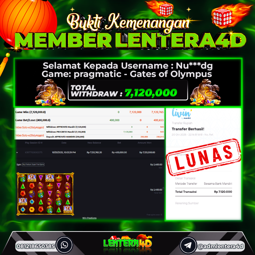 Satu lagi Bukti JP dan Pembarayan Sah Dan Dapat Dipertanggung Jawabkan, WD Berapapun Pasti Dibayar Lunas Hanya di Situs LENTERA 4D. Hati Hati Kepada Pihak Pihak Yang Mengatas namakan Pihak LENTERA4D Untuk Melakukan Penipuan.