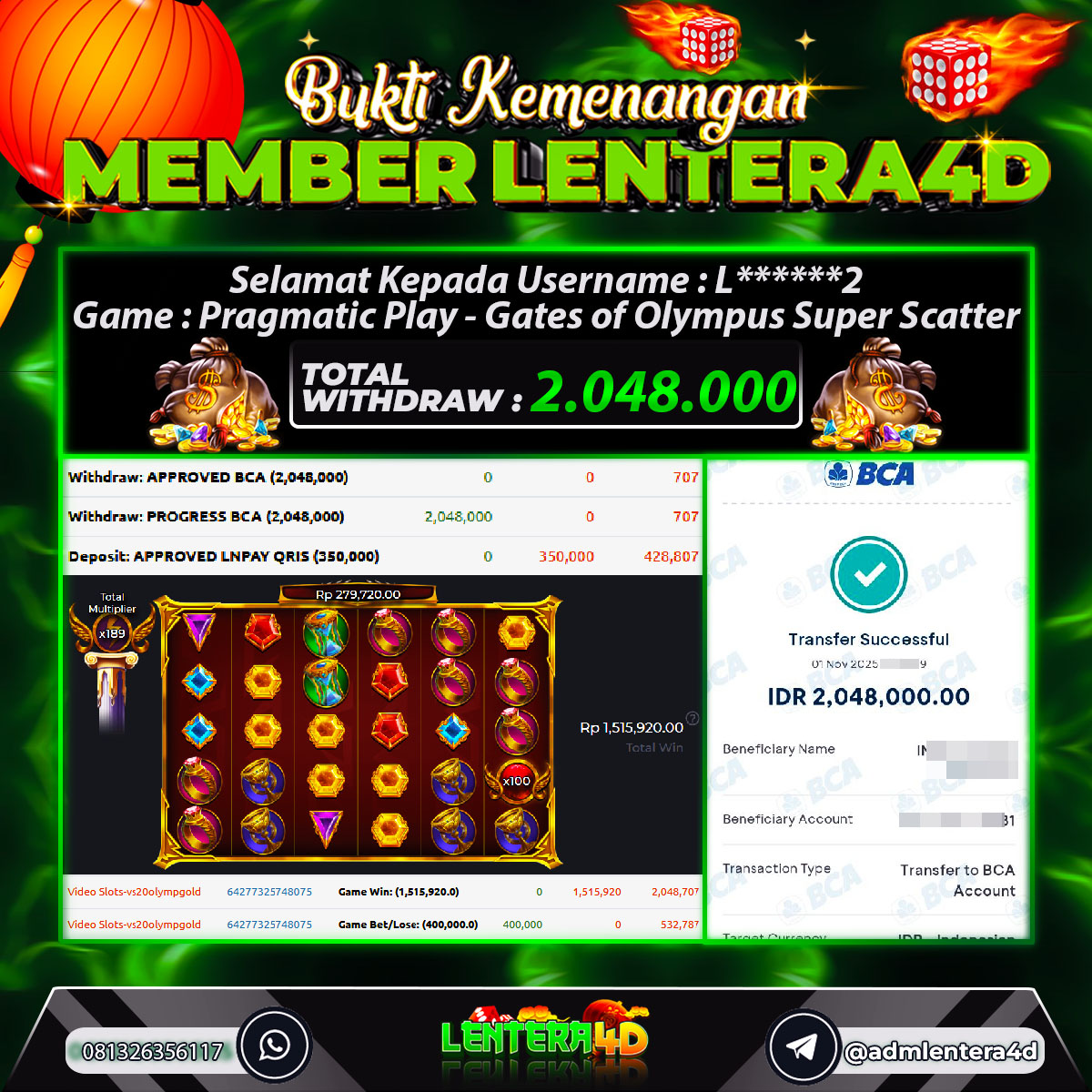 Satu lagi Bukti JP dan Pembarayan Sah Dan Dapat Dipertanggung Jawabkan, WD Berapapun Pasti Dibayar Lunas Hanya di Situs LENTERA 4D. Hati Hati Kepada Pihak Pihak Yang Mengatas namakan Pihak LENTERA4D Untuk Melakukan Penipuan.