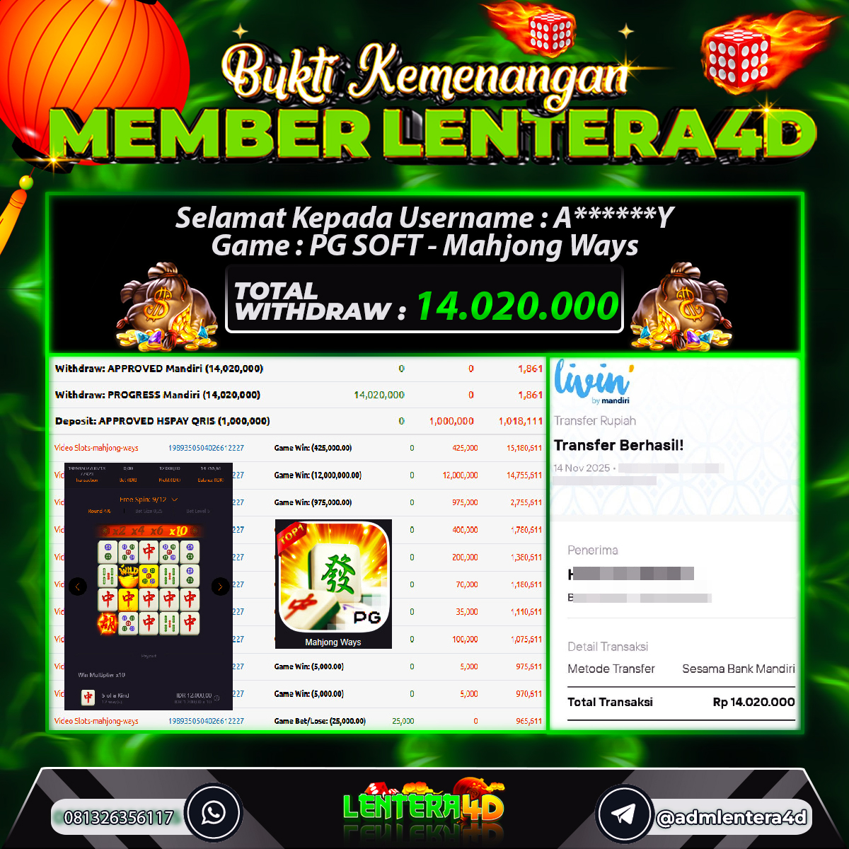 JACKPOT MAIN MAHJONG WAYS 14 NOVEMBER 2025, Jackpot Slot Gacor, Kemenangan Slot, Bukti Kemenangan Slot, Kemenangan Slot PG SOFT, Menang Slot online, Slot Gacor, Situs Aman Terpercaya, WD Berapapun Pasti DI Bayar Tuntas, Maxwin Slot Online.