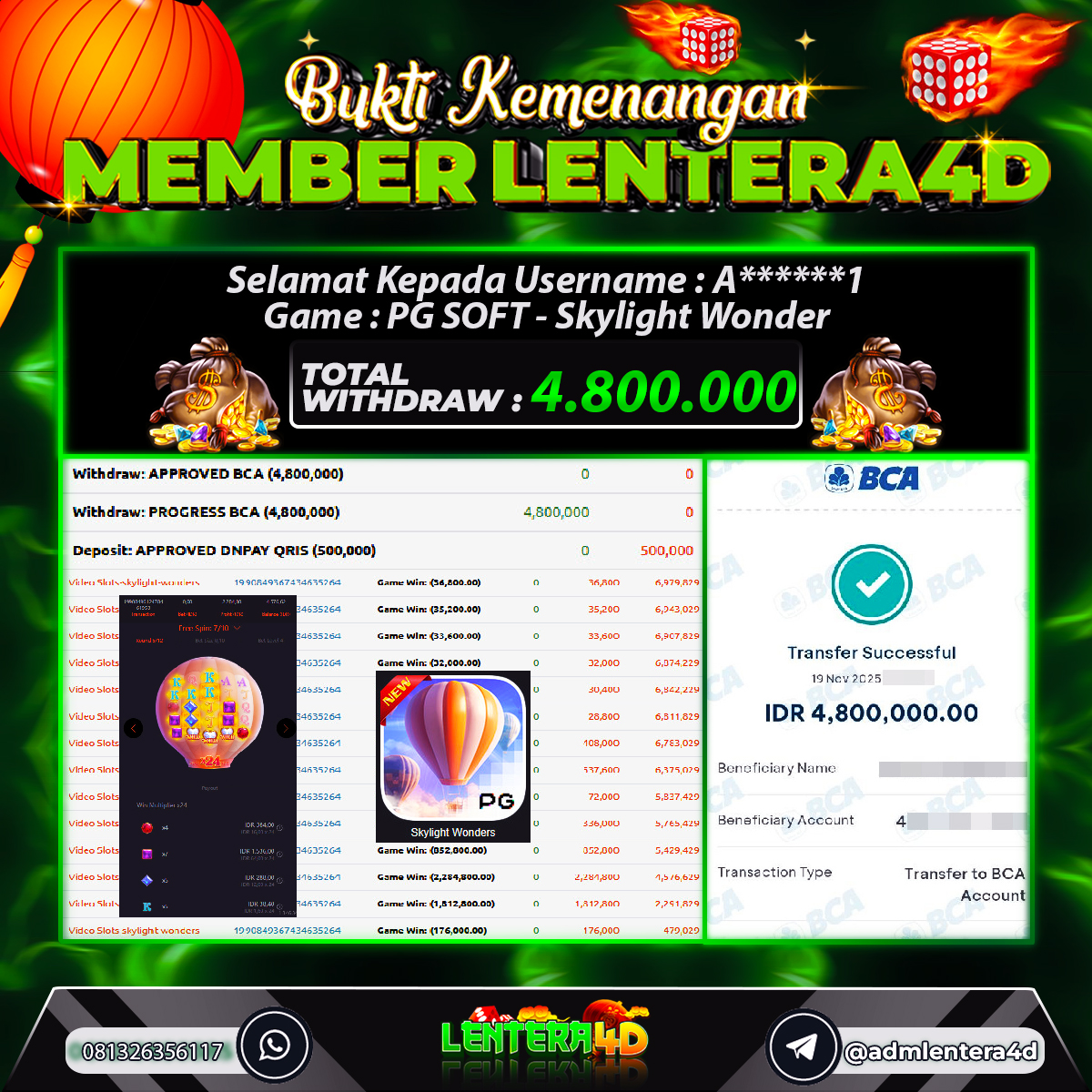 JACKPOT MAIN SKYLIGHT WONDERS 19 NOVEMBER 2025, Jackpot Slot Gacor, Kemenangan Slot, Bukti Kemenangan Slot, Kemenangan Slot PG SOFT, Menang Slot online, Slot Gacor, Situs Aman Terpercaya, WD Berapapun Pasti DI Bayar Tuntas, Maxwin Slot Online.