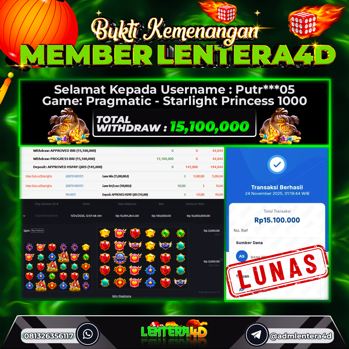 JACKPOT STARLIGHT PRINCES 1000 24 NOVEMBER 2025, Jackpot Slot Gacor, Kemenangan Slot, Bukti Kemenangan Slot, Kemenangan Slot Pragmatic, Menang Slot online, Slot Gacor, Situs Aman Terpercaya, WD Berapapun Pasti DI Bayar Tuntas, Maxwin Slot Online.