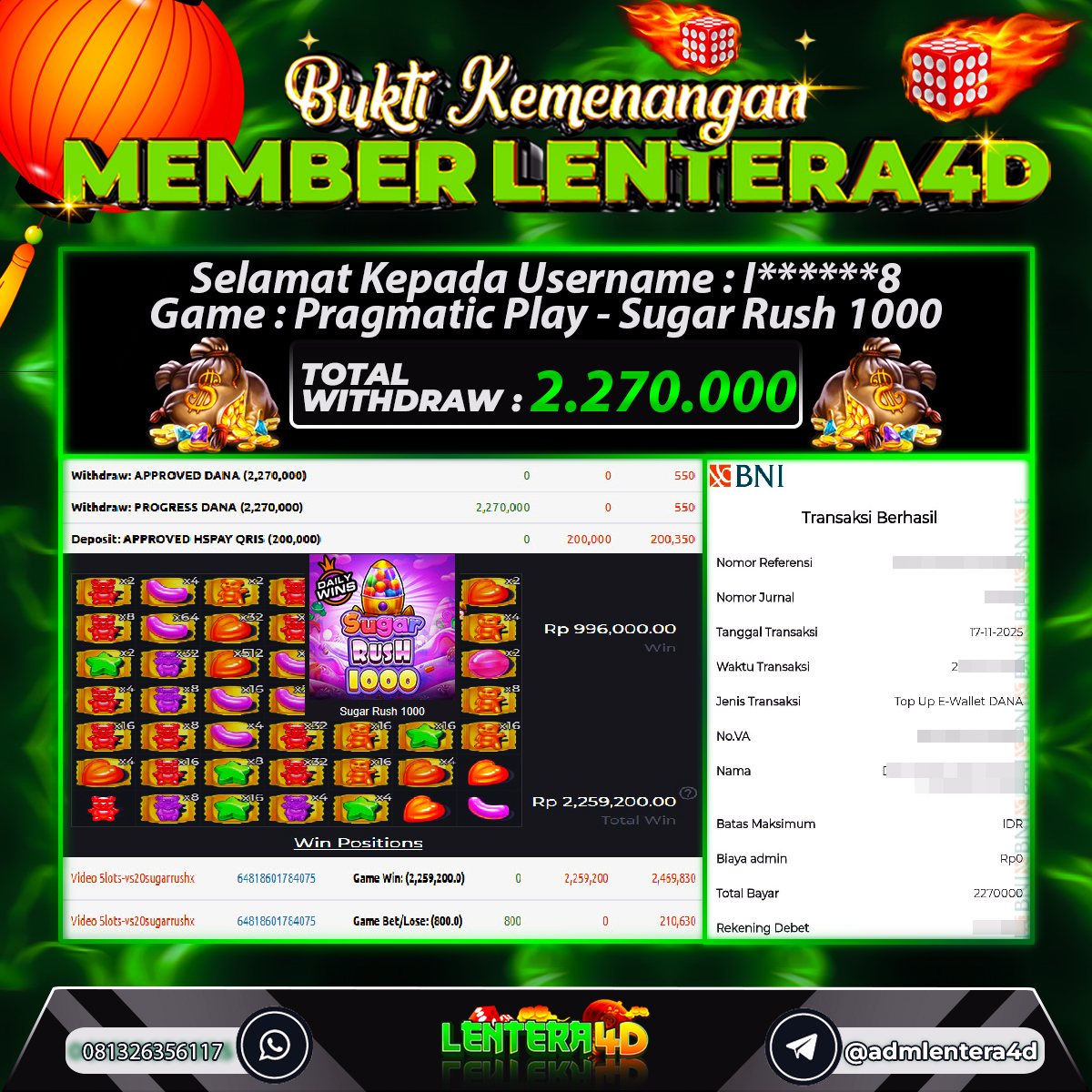 JACKPOT SUGAR RUSH 1000 17 NOVEMBER 2025, Jackpot Slot Gacor, Kemenangan Slot, Bukti Kemenangan Slot, Kemenangan Slot Pragmatic Play, Menang Slot online, Slot Gacor, Situs Aman Terpercaya, WD Berapapun Pasti DI Bayar Tuntas, Maxwin Slot Online.