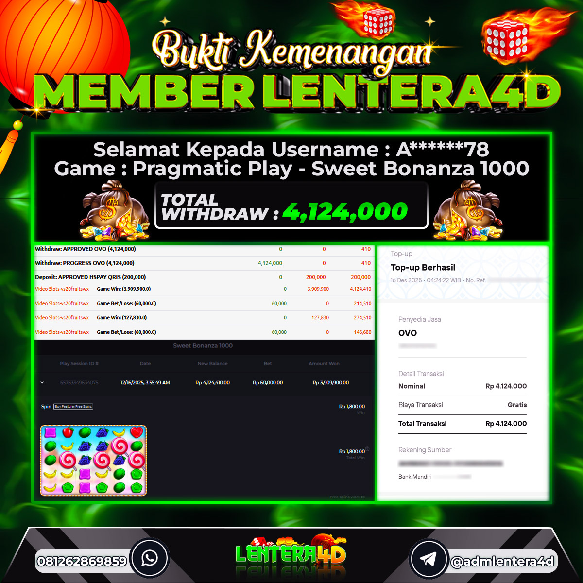 JACKPOT SWEET BONANZA 1000 16 DESEMBER 2025