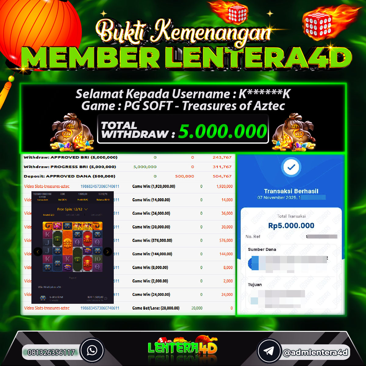 JACKPOT MAIN TREASURES OF AZTEC 07 NOVEMBER 2025, Jackpot Slot Gacor, Kemenangan Slot, Bukti Kemenangan Slot, Kemenangan Slot PG SOFT, Menang Slot online, Slot Gacor, Situs Aman Terpercaya, WD Berapapun Pasti DI Bayar Tuntas, Maxwin Slot Online.